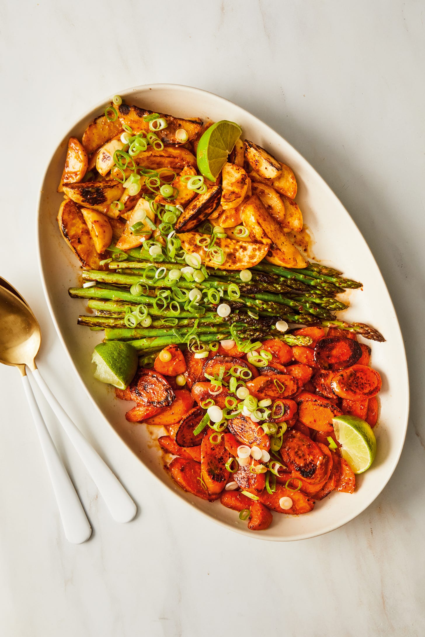 The miso-glazed vegetables are even better at room temperature, after they’ve had a chance to soak up more flavor. They’re fantastic with the Glazed Meatball Lettuce Wraps and the Bulgogi Bowls.