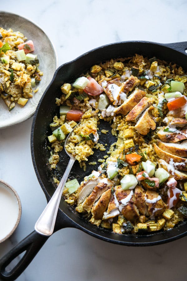 Chicken Shawarma Casserole: This is a fan favorite summer casserole that uses a classic spice mix, plump rice, zucchini, and my favorite street food white sauce. Quick, easy, and according to the dozens of 5 star reviews, a family fave!