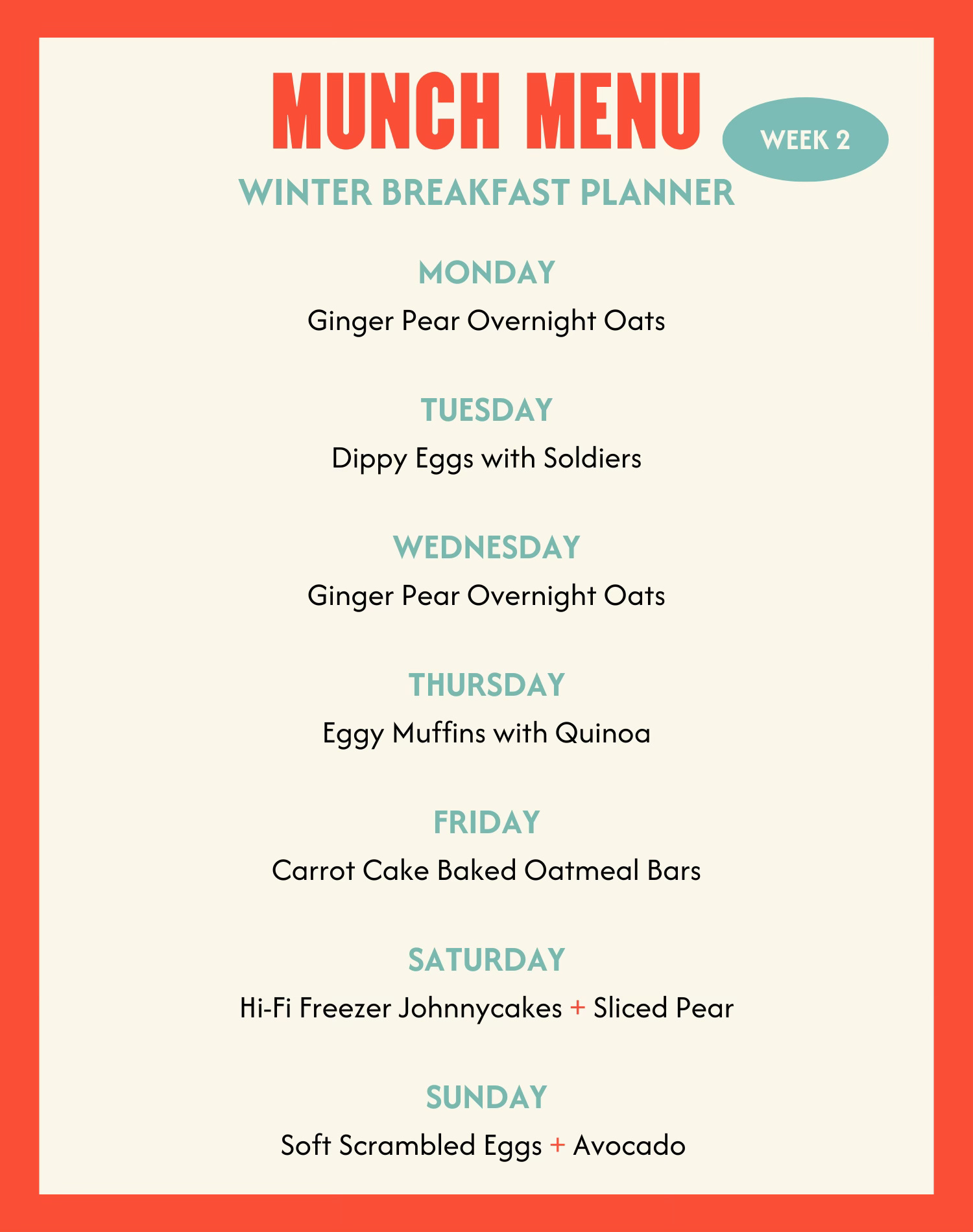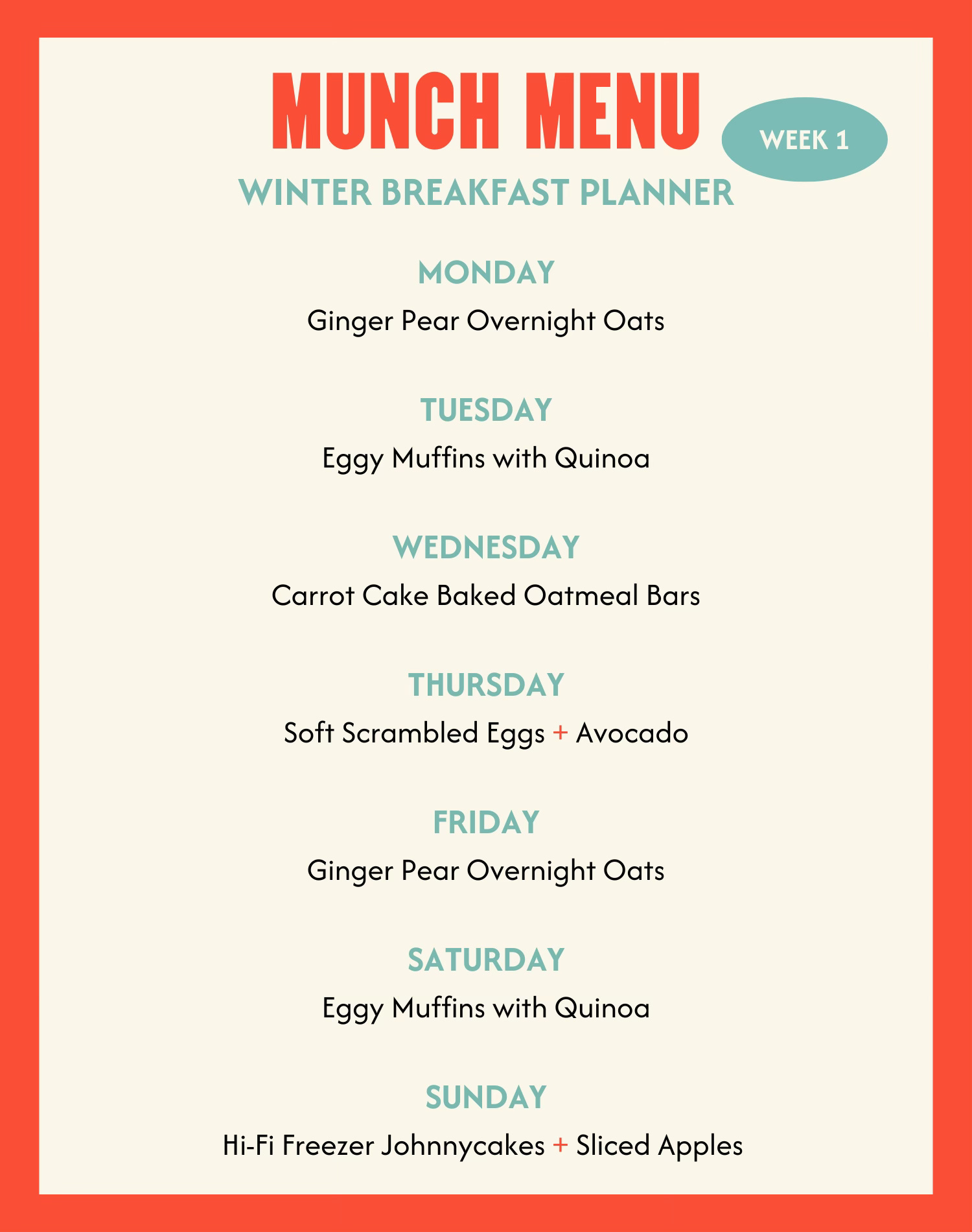 Munch Menu Winter Breakfast Planner