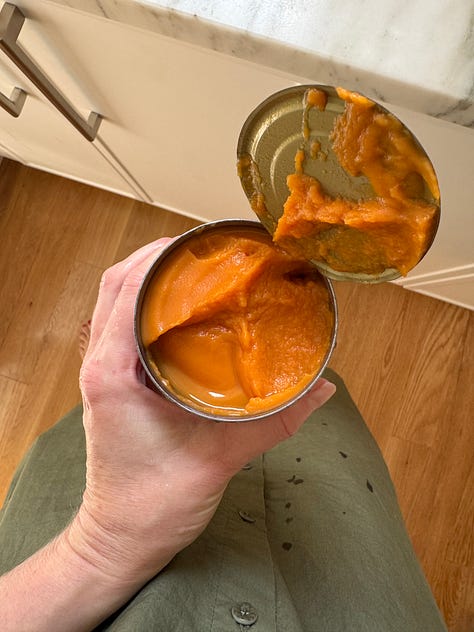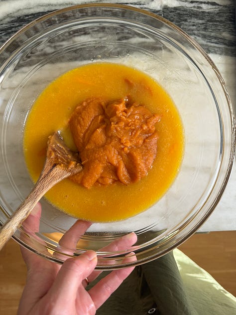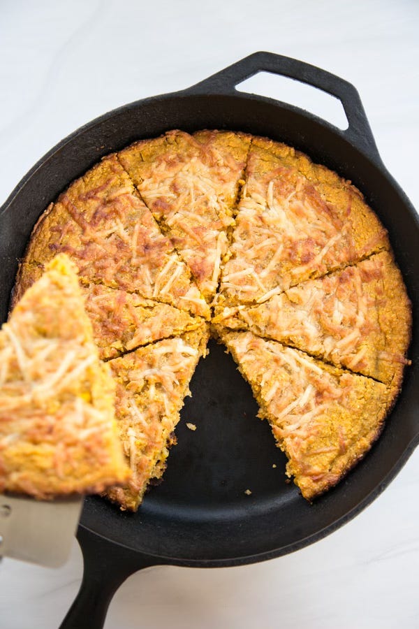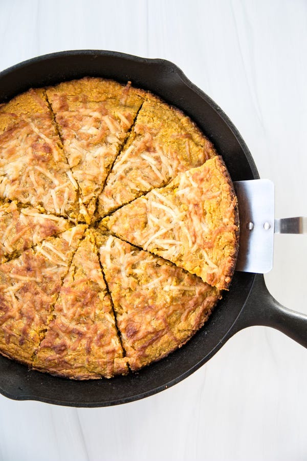 Last weekend, my munch and I made a variation on the zucchini cornbread in my cookbook CARBIVORE, swapping the grated summer squash for unsweetened pumpkin puree.