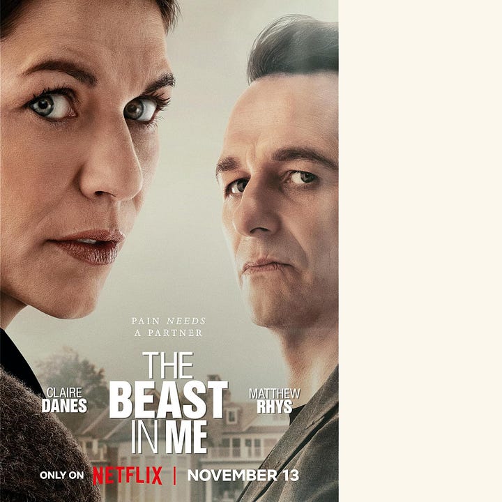 The Beast in Me (TV): I spent last month’s morsels revealing my intense girl crush on Keri Russell, so it should come as no surprise that I would welcome a threesome with her and Matthew Rhys any day. He stars in this new series alongside Claire Danes, who delivers some next level chin quivers, as a Robert Durst-esque real estate tycoon accused of killing his wife. It’s binge-able, unsettling and stylishly directed.